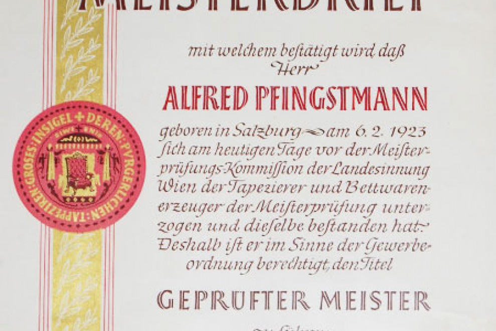 Sein Sohn, Alfred Pfingstmann sen., der 1923 das Licht der Welt erblickte, erlernte im halbelterlichen Betrieb in Gastein das Handwerk, legte 1951 in Wien die Meisterprüfung ab und gründete 1952 seinen eigenen Betrieb.
